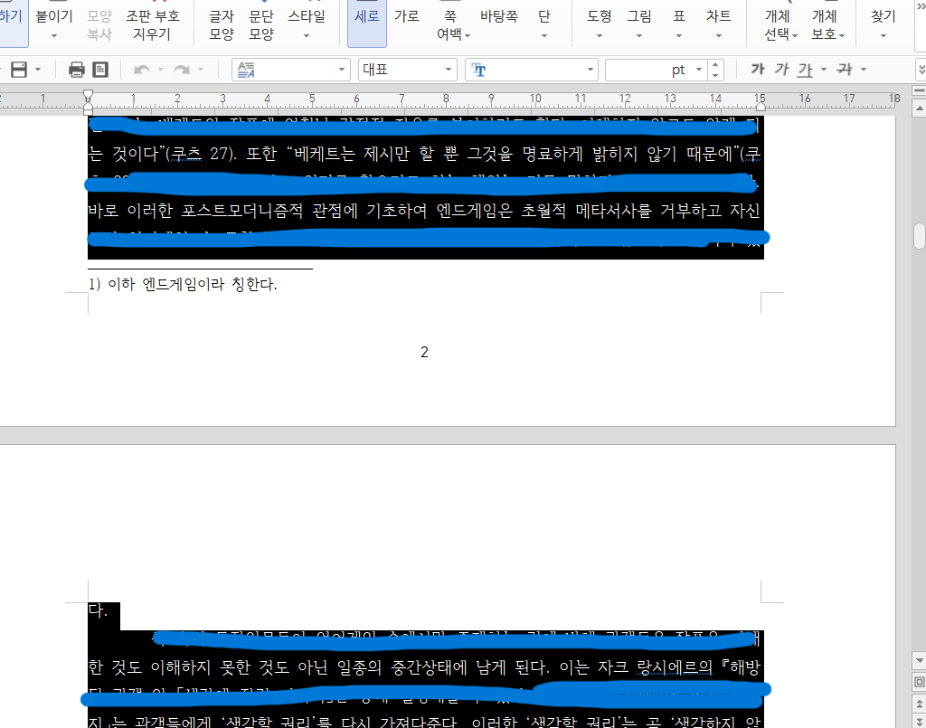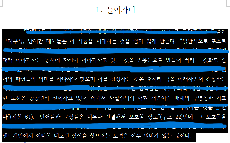 단순히 마우스 드래그를 사용해 이러한 문단을 전체 선택을 하면 시간이 오래 걸리고 중간에 끊길 수도 있어 여간 불편한 것이 아닙니다.