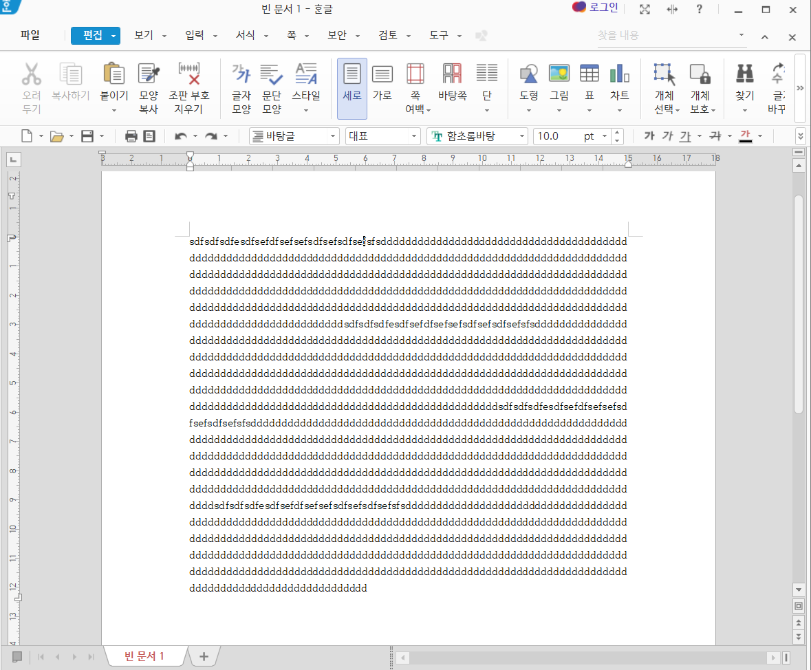 한글에 글을 쓸 때,